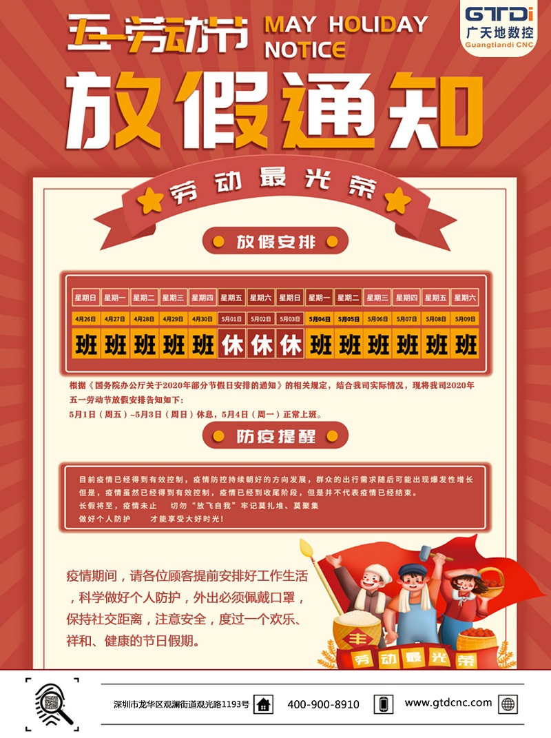 2020年BG真人数控公司五一劳动节放假时间安排